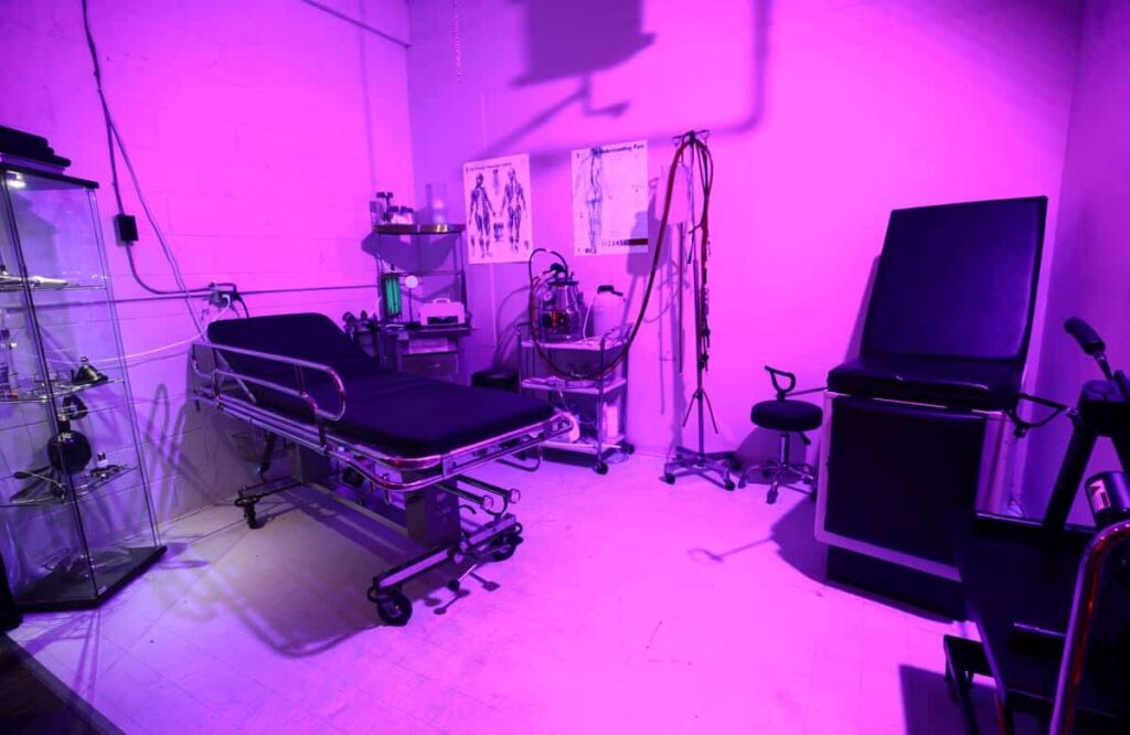 -Medical room with antique portable medical bed, gynaecologist chair, dresser, autoclave and various medical equipment and accessories*